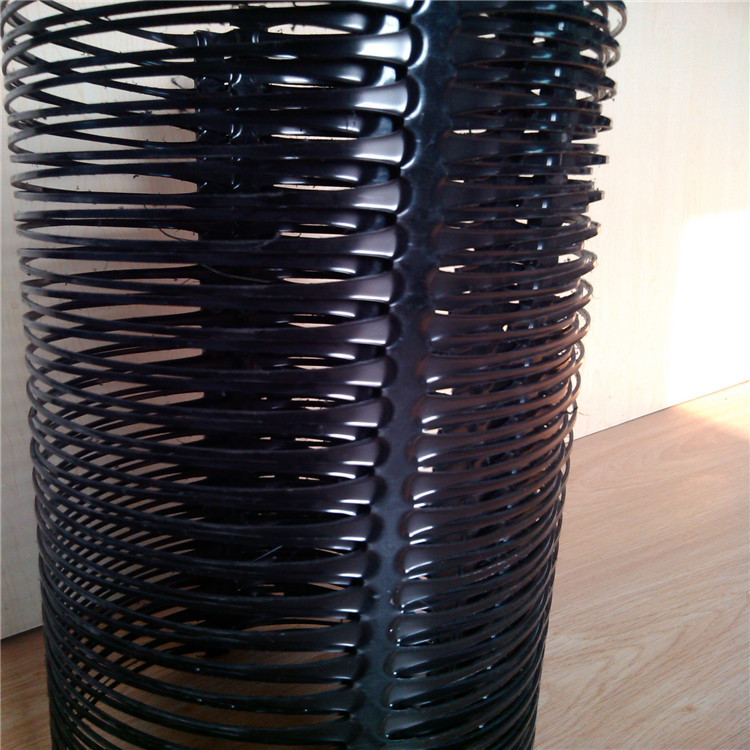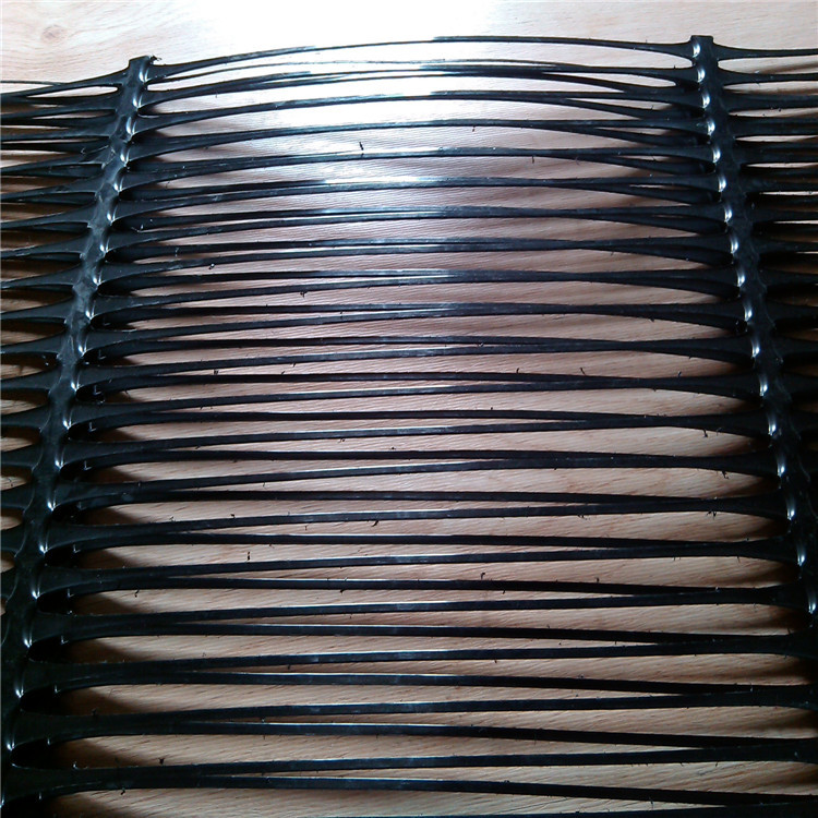 单向塑料土工格栅是指以高密度聚乙烯(HDPE)为原材料,经塑化挤压成板材,对板材进行规则冲孔,加热后纵向拉伸而成的土工格栅。这种过程中使高分子成定向线性状态并形成分布均匀、节点强度高的长椭圆形网状整体性结构。此种结构具有相当高的拉伸强度和拉伸模量,特别是我公司此类产品更具有超国际水平的高早期(伸长率在2%5%)拉伸强度和拉伸模量。给土壤提供了理想的力的承担和扩散的连锁系统。该产品拉伸强度大(>150Mpa),适应各种土壤,是被广为采用的加筋加固材料。一般用于铺设在土壤中,通过格栅网孔与土体之间的咬合和互锁作用,构成了一个高效的应力传递机构,使局部载荷能迅速有效地扩散到大面积的土体中去,从而实现降低局部破坏应力,提高工程使用寿命之目的。