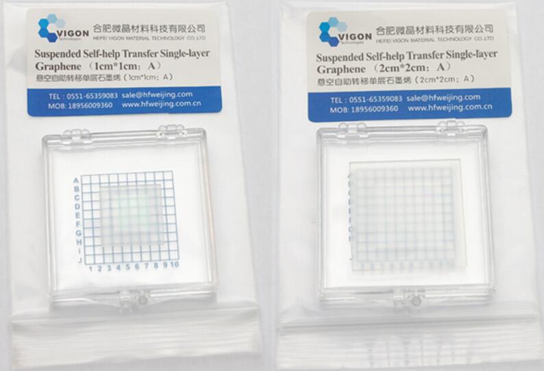 悬空自助转移单层石墨烯 (WJSS),在“泡-取”式石墨烯的基础上,刻蚀掉铜基底得到石墨烯/保护层薄膜,然后再将石墨烯/保护层薄膜转移至“悬空基底”上,客户拿到产品后只需将本产品在去离子水中轻轻释放就可得到可直接转移至任何基底的石墨烯。