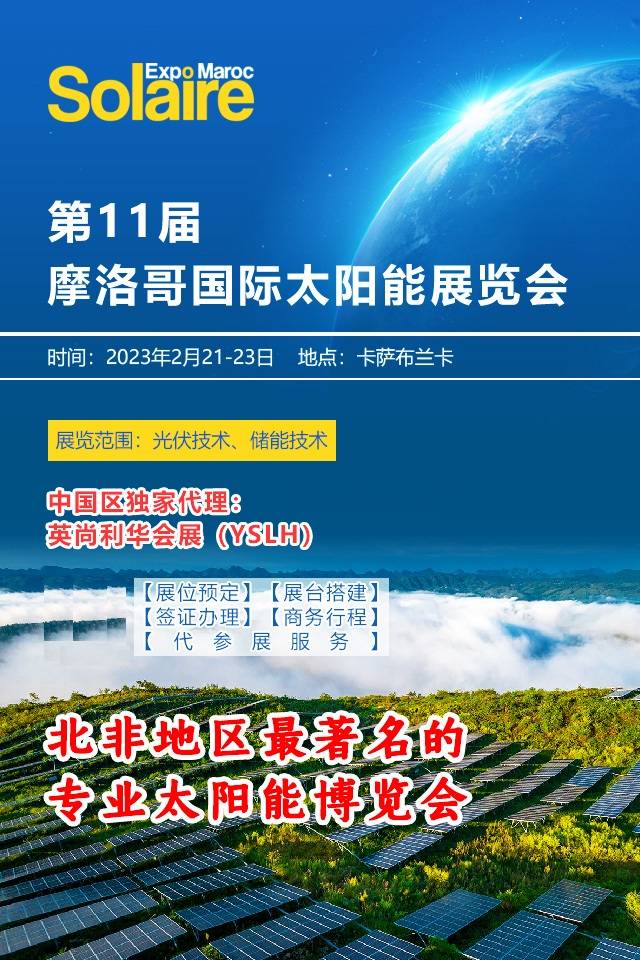 2022年众多国际和当地展 在Solaire Expo Maroc展会现场精彩亮相,吸引了大批专业买家前来交流和采购。 摩洛哥国际太阳能展 (SOLAIRE EXPO MAROC)MAROC),是摩洛哥最大最专业的太阳能及新能源展览会。该展会每年参展商数量呈现20%的增长趋势。据展会现场调查,90的参展企业将向他人推荐此展会,98%参展企业对观展商的数目以及质量表示十分满意。2022年虽然有受到疫情的影响,参展观众质量和数量仍然保持了较高水平,参展展商纷纷表示不虚此行。国内部分参展商代表隆基 、天合光能、 欣驰、 英利能源、宁波尤利卡、山东中晶、南玻集团、乐泰、 阳光能源 、 南都电源 。