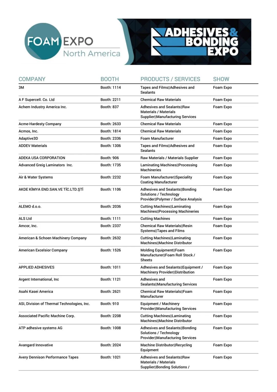 发泡和胶黏剂领域顶级品牌的参展和加持: