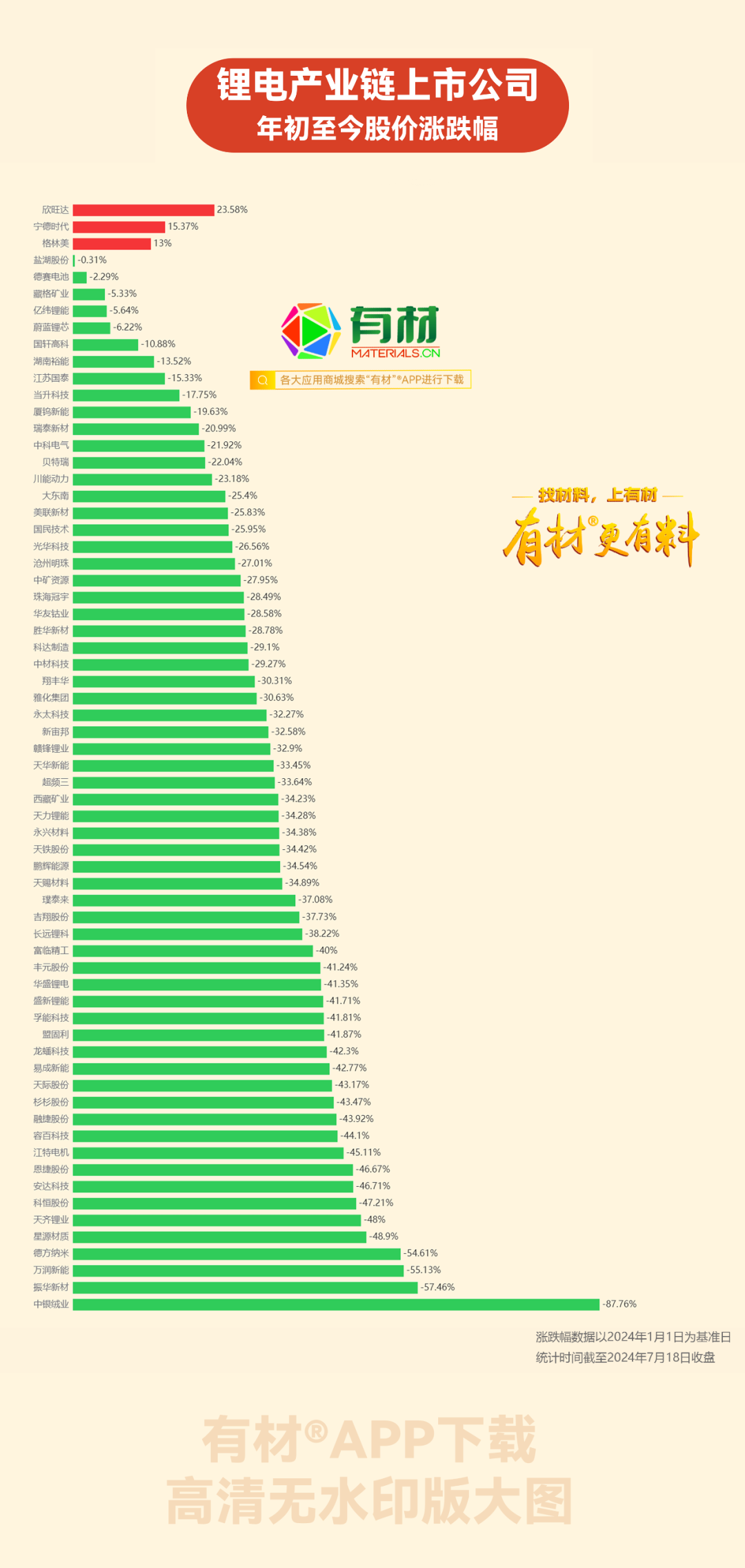 关键词:宁德时代、盐湖股份、亿纬锂能、赣锋锂业、天齐锂业、华友钴业、藏格矿业、国轩高科、欣旺达、格林美、天赐材料、恩捷股份、璞泰来、新宙邦、湖南裕能、贝特瑞、中矿资源、中材科技、川能动力、永兴材料、珠海冠宇、杉杉股份、当升科技、科达制造、天华新能、厦钨新能、江特电机、盛新锂能、孚能科技、盟固利、江苏国泰、容百科技、星源材质、雅化集团、德赛电池、瑞泰新材、西藏矿业、鹏辉能源、蔚蓝锂芯、长远锂科、融捷股份、德方纳米、富临精工、永太科技、胜华新材、中科电气、易成新能、沧州明珠、国民技术、天铁股份、振华新材、光华科技、美联新材、龙蟠科技、大东南、万润新能、吉翔股份、天际股份、天力锂能、翔丰华、丰元股份、华盛锂电、安达科技、超频三、科恒股份、中银绒业