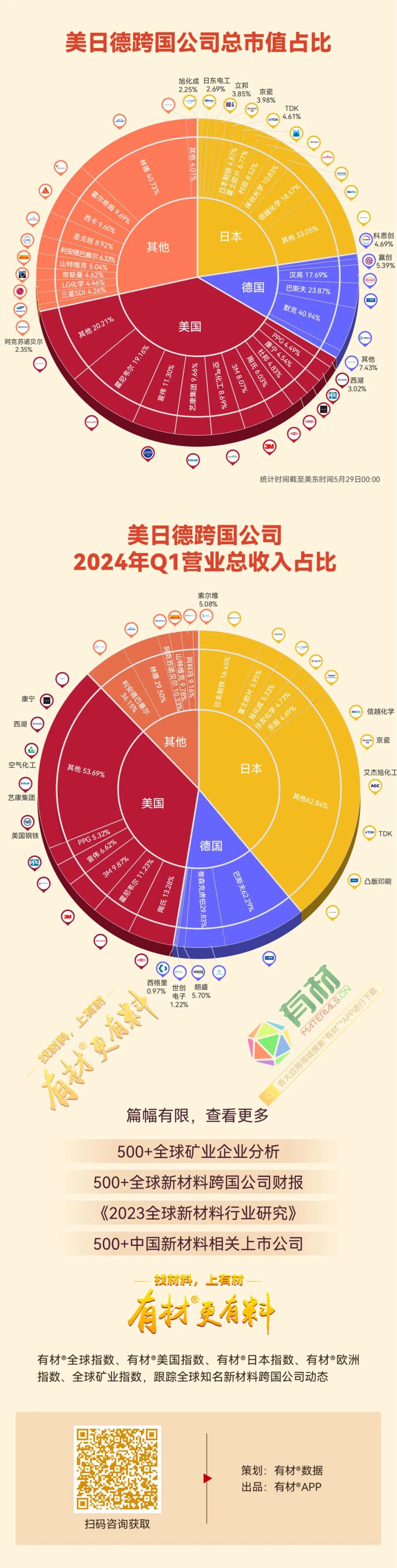近日,全球新材料公司2024年Q1财务业绩陆续公布,在充满机遇与挑战的2024年Q1,各家企业的经营状况都是怎样的呢?新材料在线®根据财报内容,帮大家总结了100+知名跨国公司Q1财务数据,让我们一起来看看吧!