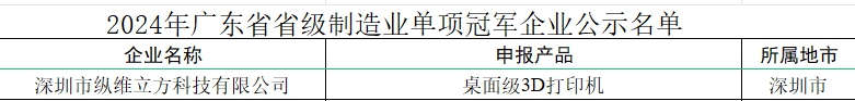 南极熊获悉,广东省工业和信息化厅正式公示了2024年省级制造业单项冠军企业通过名单,其中涉及了多个当下热门的制造业创新领域。经过遴选和复核,纵维立方凭借在桌面级3D打印领域的卓越实力,入选省级制造业单冠企业!