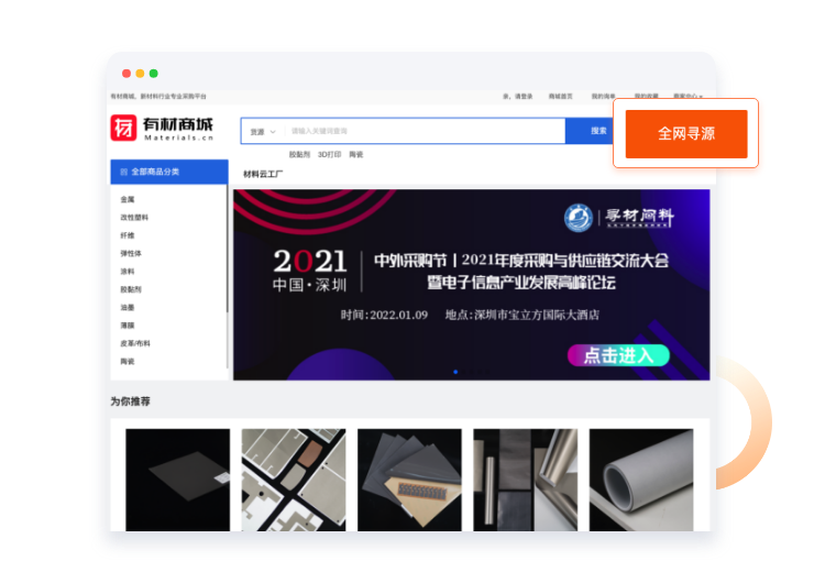 有材商城拥有独立网站,全网用户通过搜索引擎搜到后打开浏览。